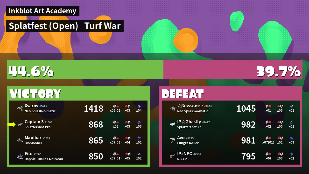 | Medals | #1 Home-Base Inker #1 Crab Tank User #2 Turf Inker | ||
