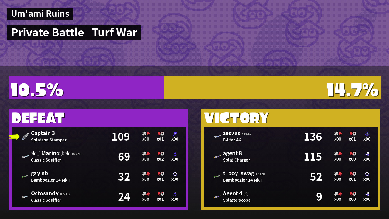 | Mode | Turf War - Private Battle | ||