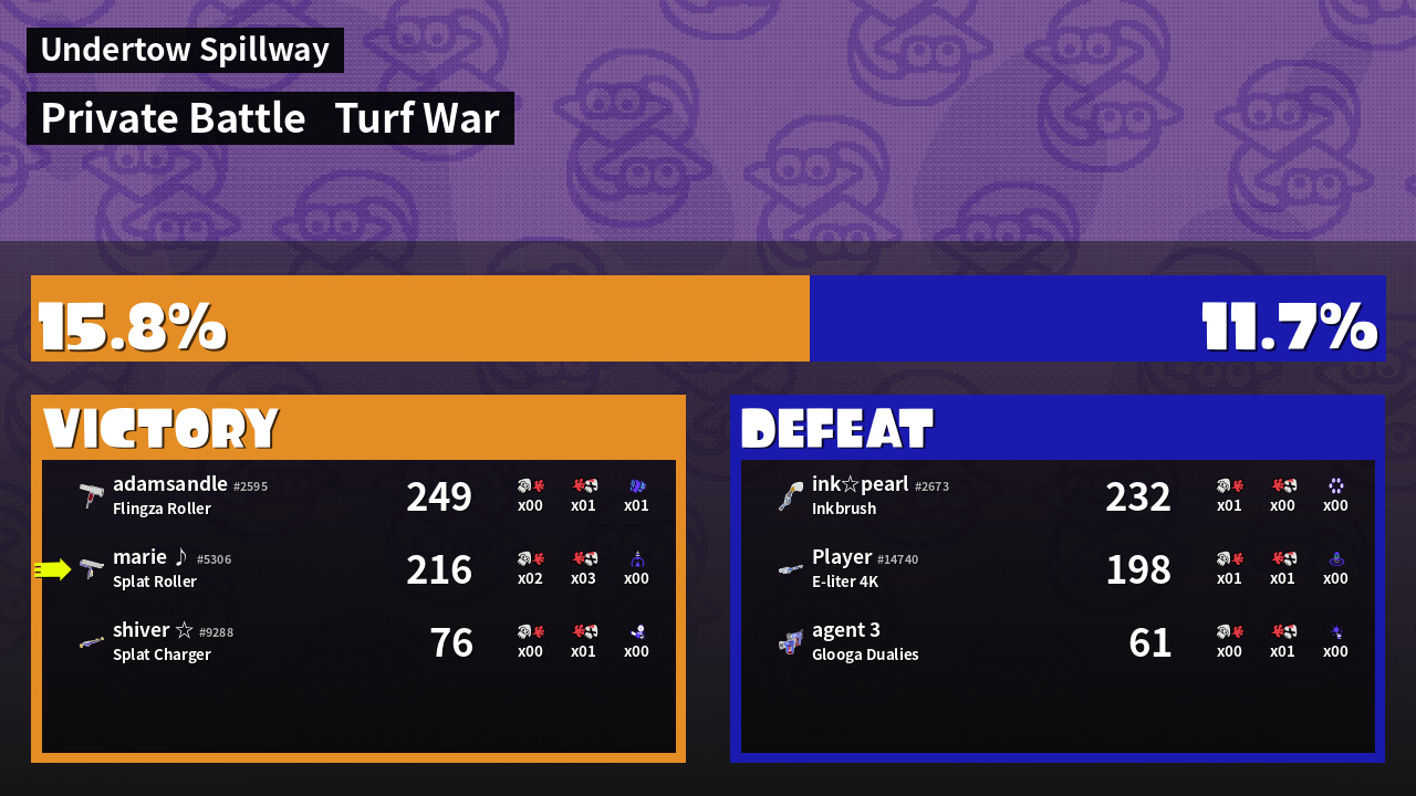 | Weapon | Splat Roller ( Curling Bomb / Big Bubbler) | ||