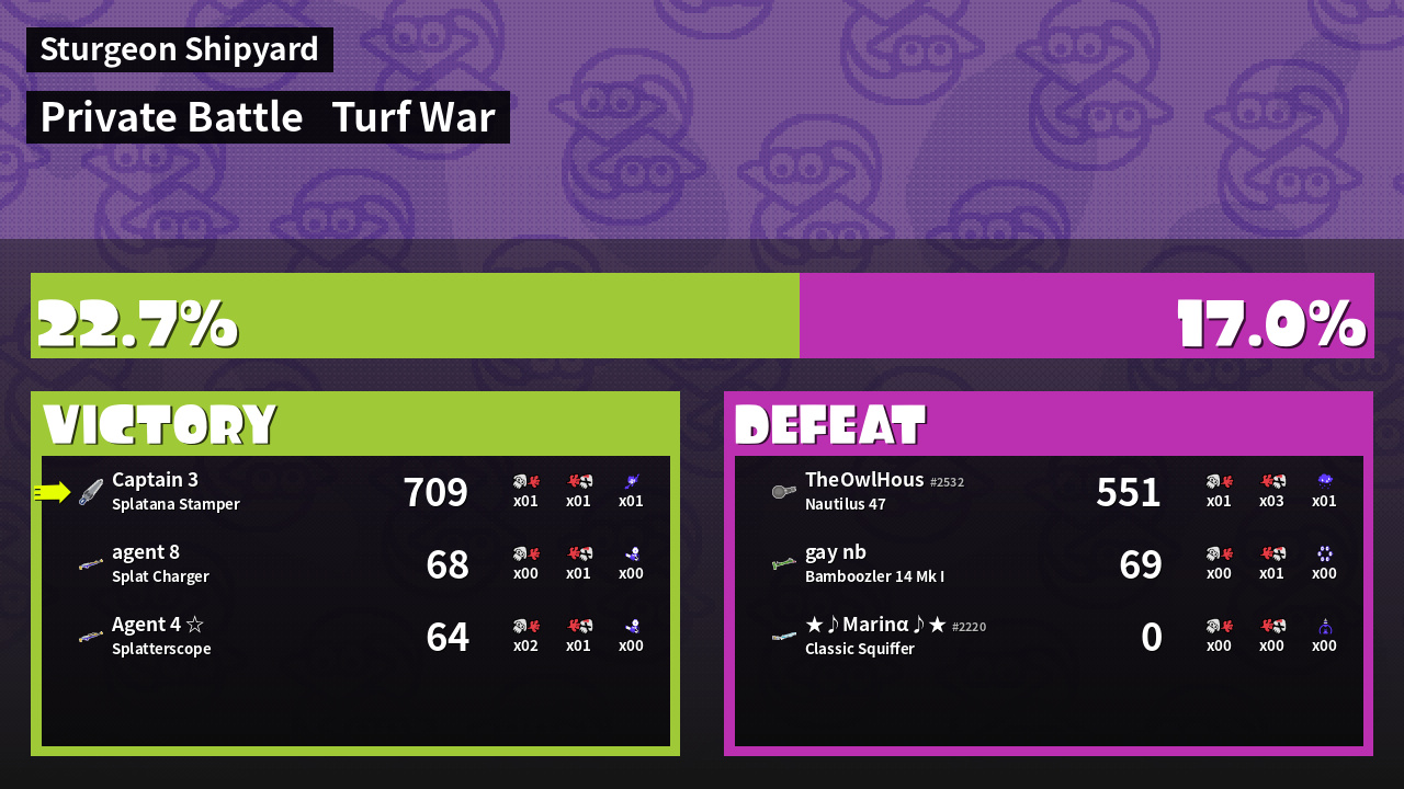 | Mode | Turf War - Private Battle | ||