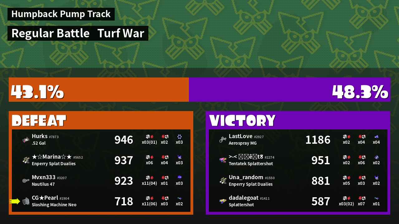 | Mode | Turf War - Regular Battle | ||