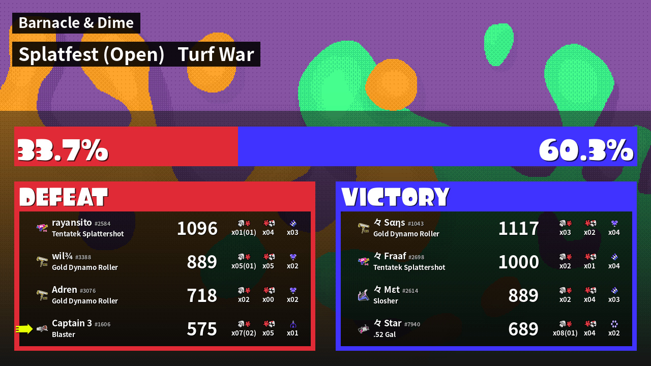 | Medals | #1 Overall Splatter #1 Popular Target #1 Enemy-Base Inker | ||