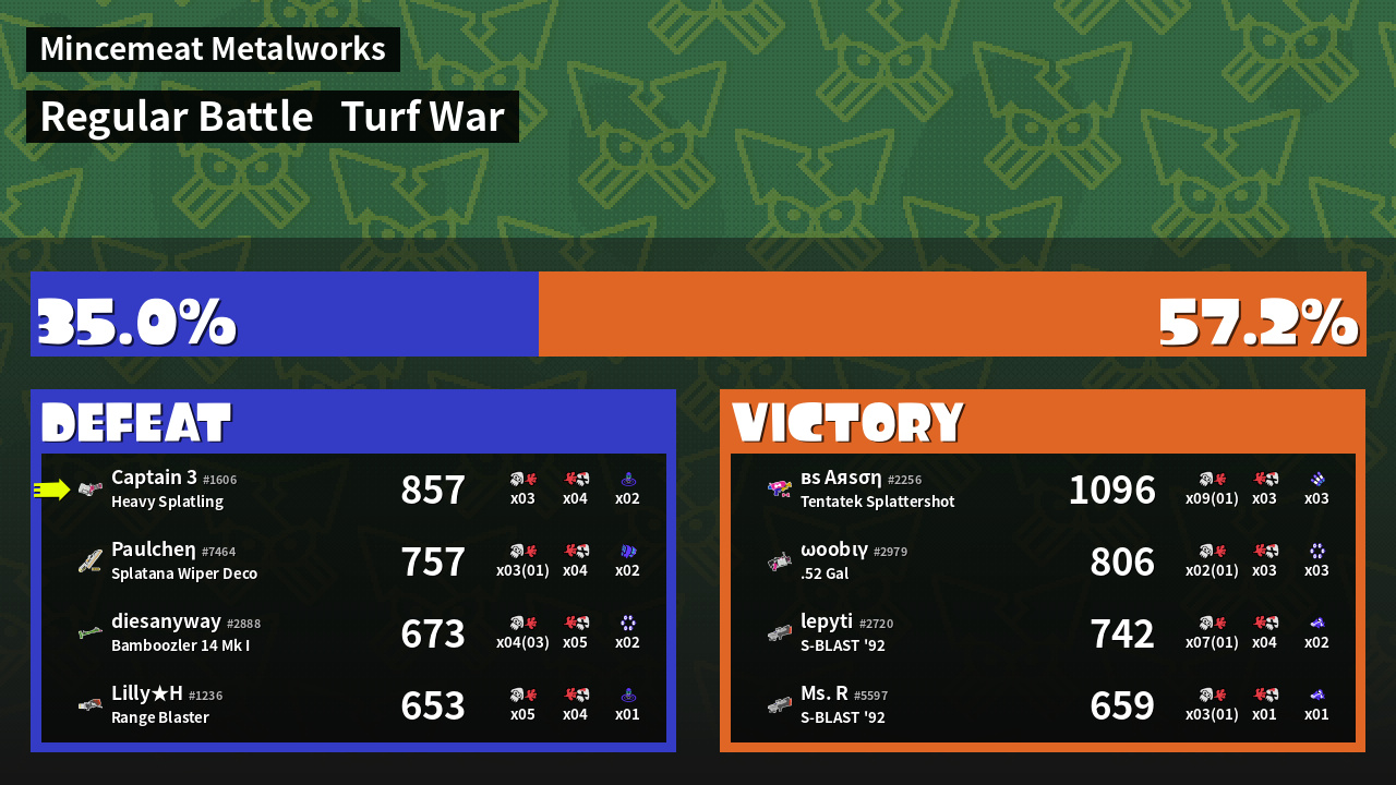 | Mode | Turf War - Regular Battle | ||