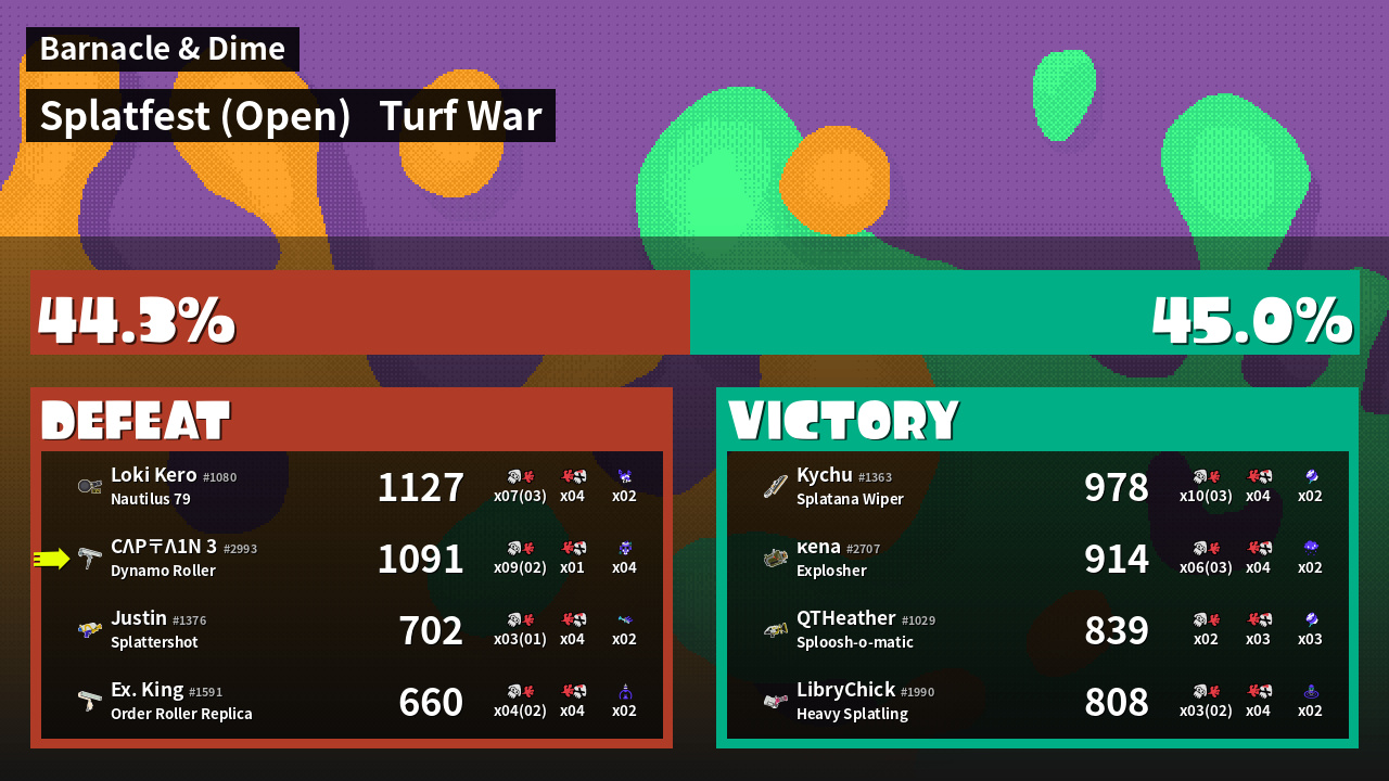 | Medals | #1 Overall Splatter #1 Popular Target #1 Enemy-Base Inker | ||