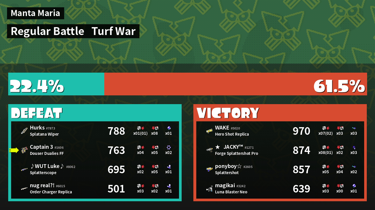| Medals | #1 Overall Splatter #1 Popular Target #1 Enemy-Base Inker | ||