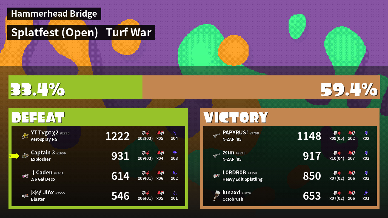 | Medals | #1 Overall Splatter #1 Popular Target #1 Super Jump Spot | ||