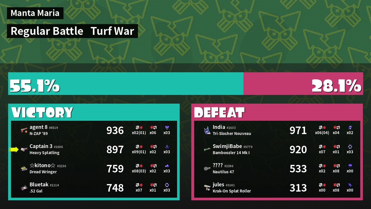 | Mode | Turf War - Regular Battle | ||