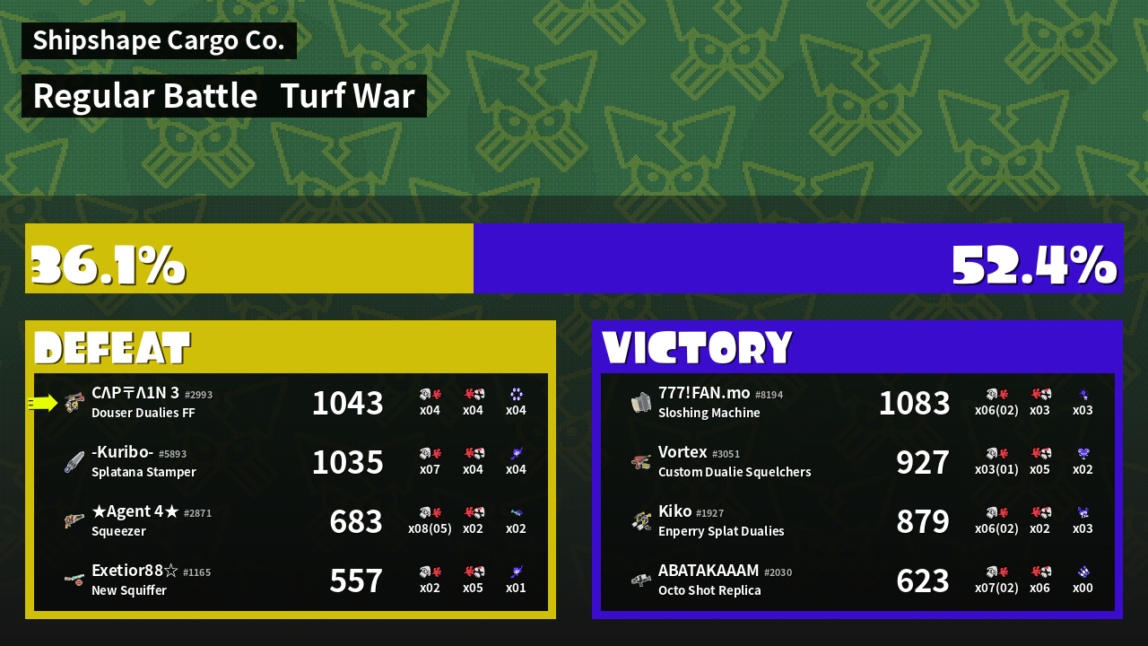 | Mode | Turf War - Regular Battle | ||