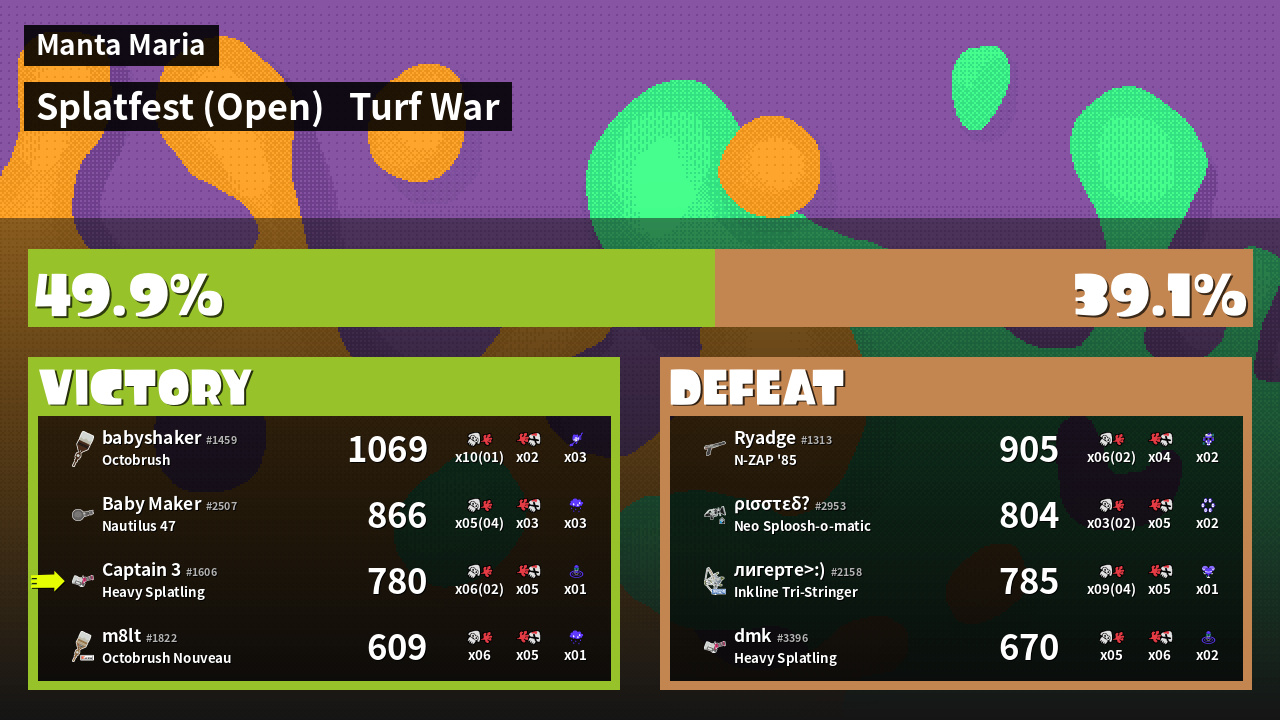 | Medals | #2 Overall Splatter #2 Splat Assister | ||