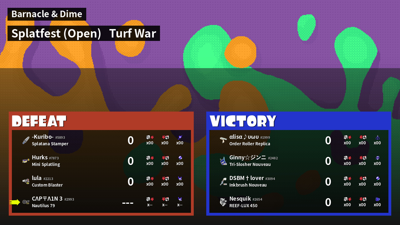 | Mode | Turf War - Splatfest (Open) | ||
