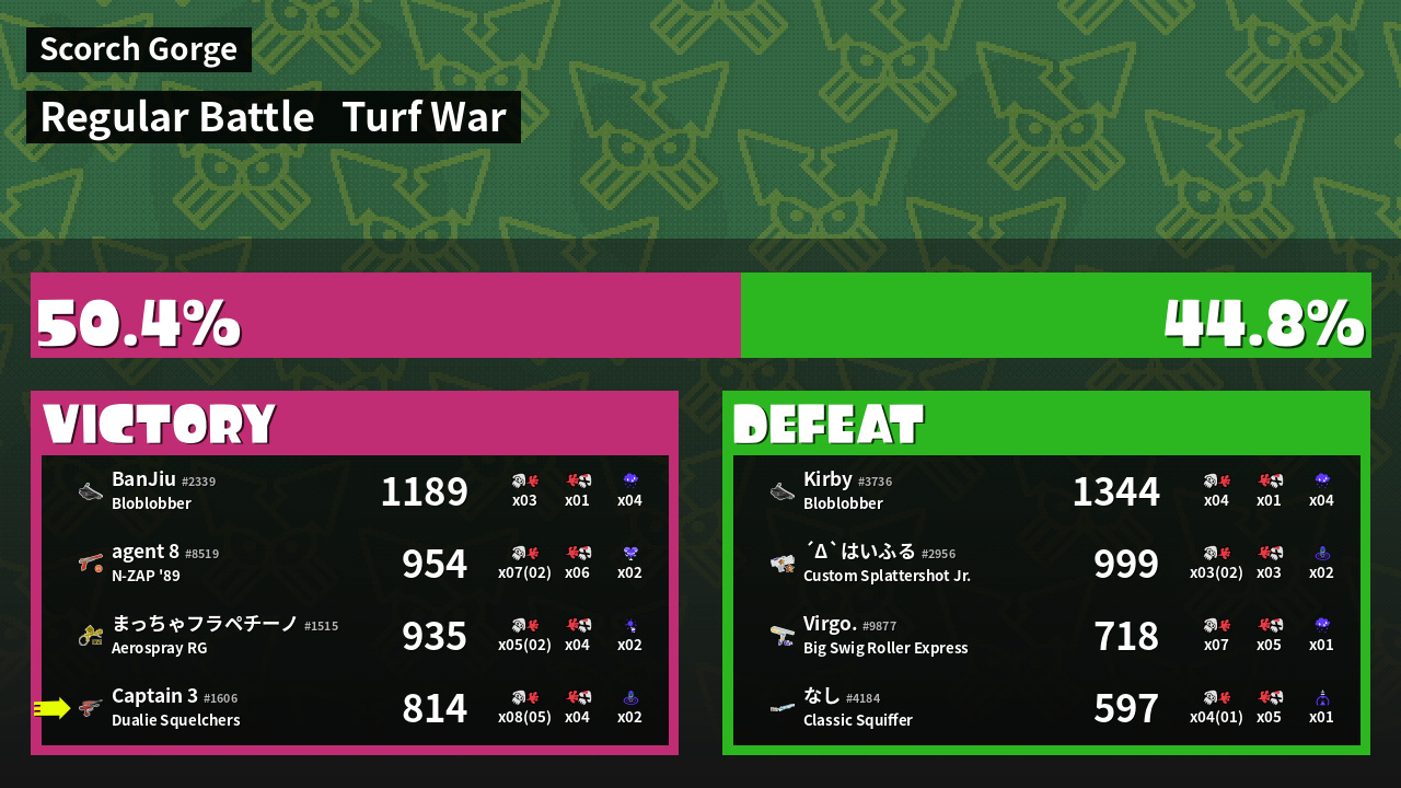 | Mode | Turf War - Regular Battle | ||
