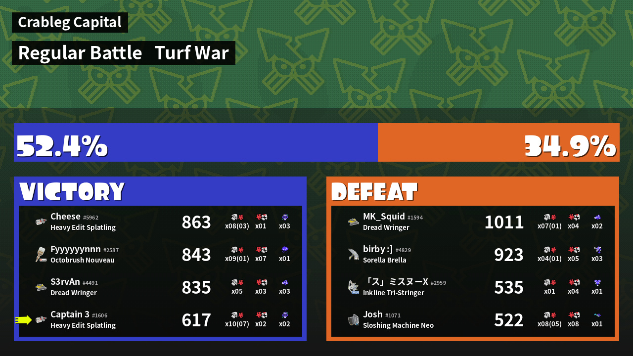 | Medals | #1 Overall Splatter #1 Splat Assister #2 Enemy-Base Inker | ||