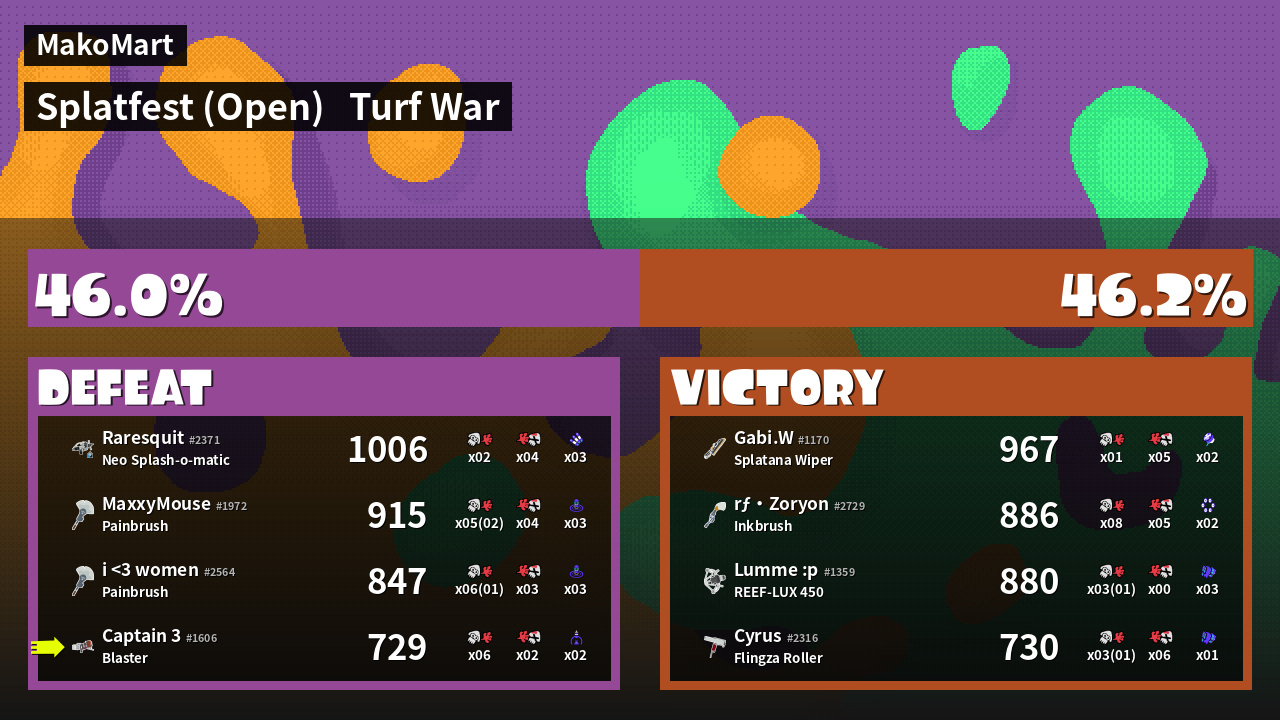| Mode | Turf War - Splatfest (Open) | ||