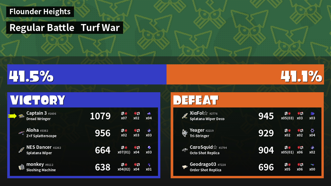 | Mode | Turf War - Regular Battle | ||