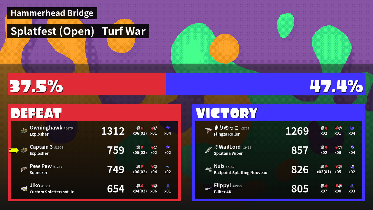 | Medals | #1 Popular Target #1 Splat Assister #1 Base Defender | ||
