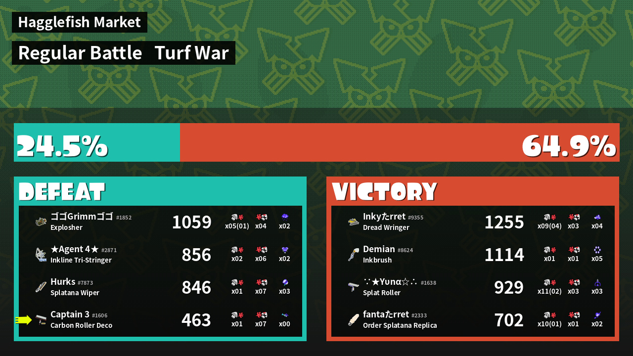| Mode | Turf War - Regular Battle | ||