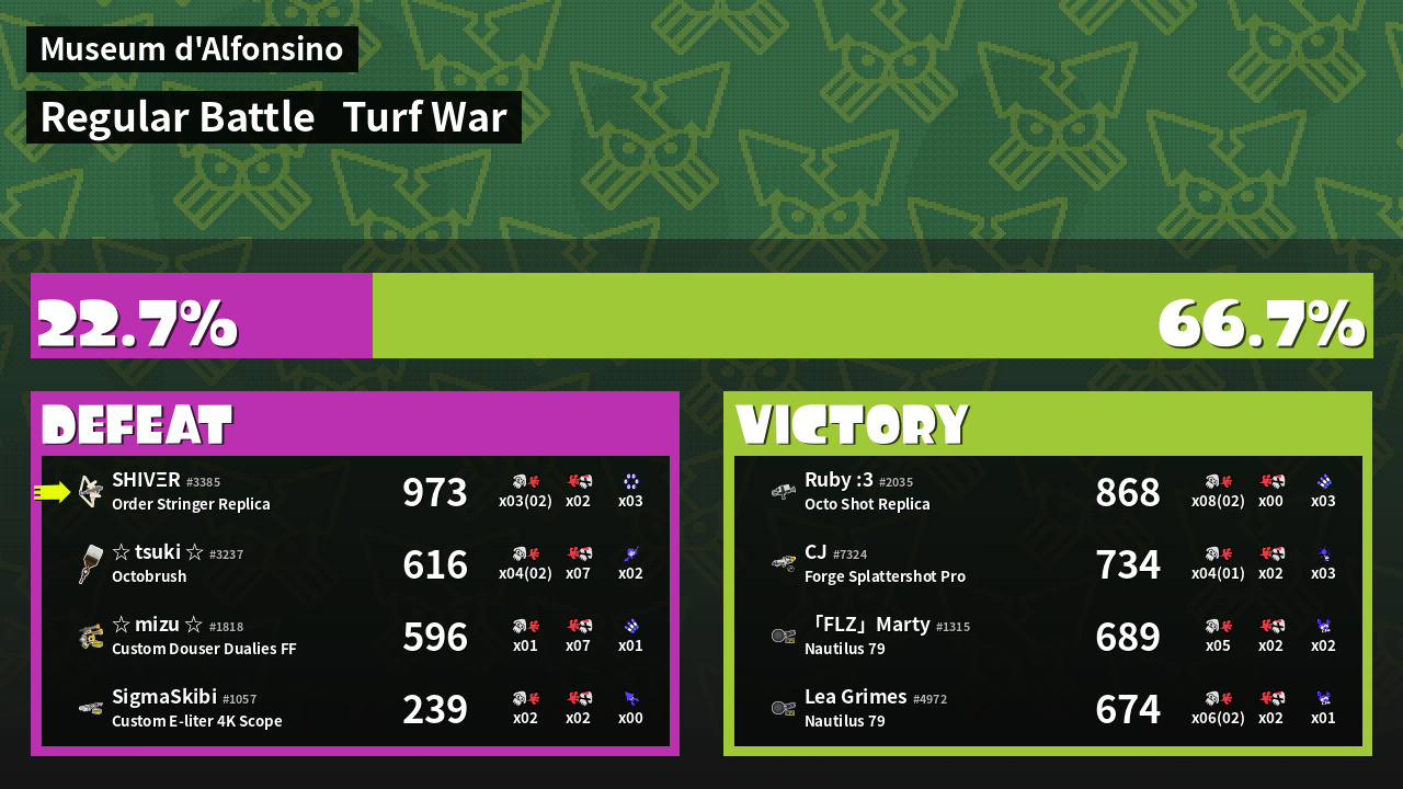 | Mode | Turf War - Regular Battle | ||