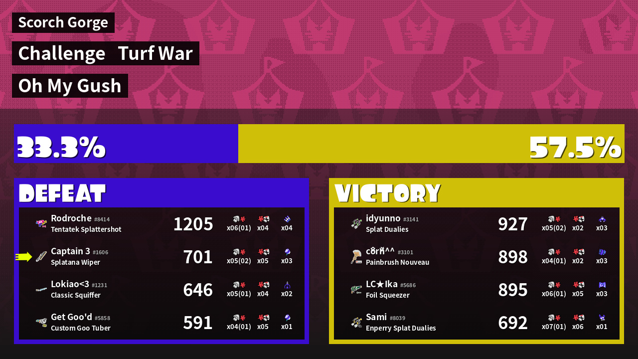 | Medals | #1 Splat Assister #1 Base Defender #1 Ultra Stamp User | ||