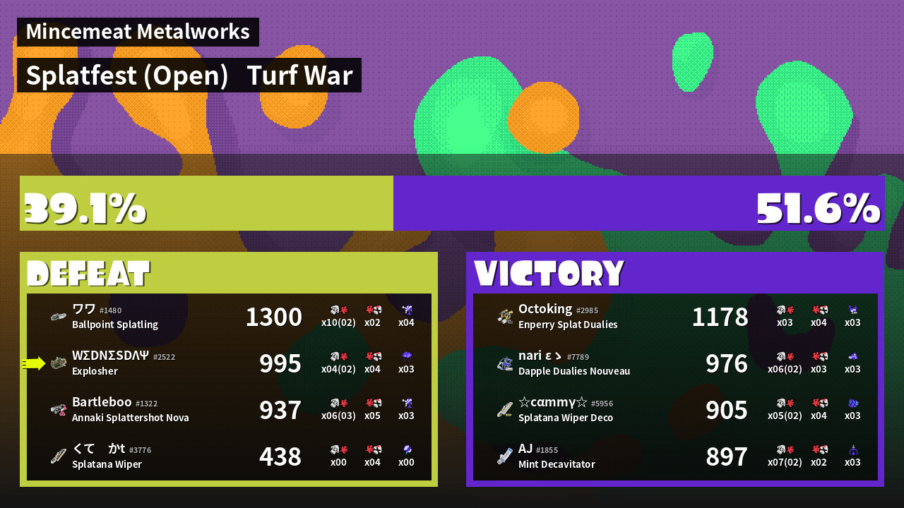 | Medals | #1 Enemy-Base Inker #1 Base Defender #1 Ink Consumer | ||
