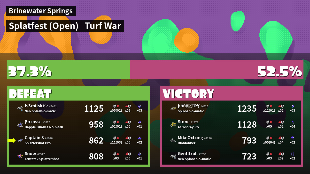 | Medals | #1 Overall Splatter #1 Popular Target #1 Enemy Splatter | ||