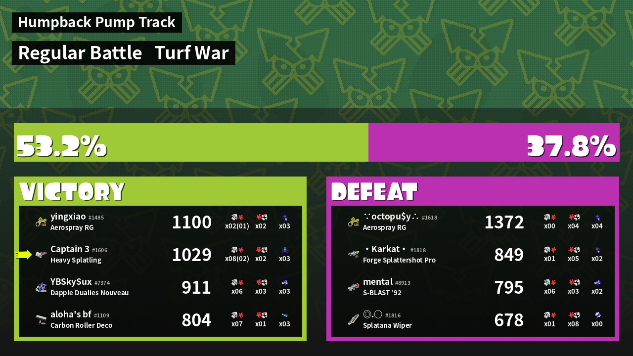 | Medals | #1 Overall Splatter #1 Popular Target #1 Enemy-Base Inker | ||