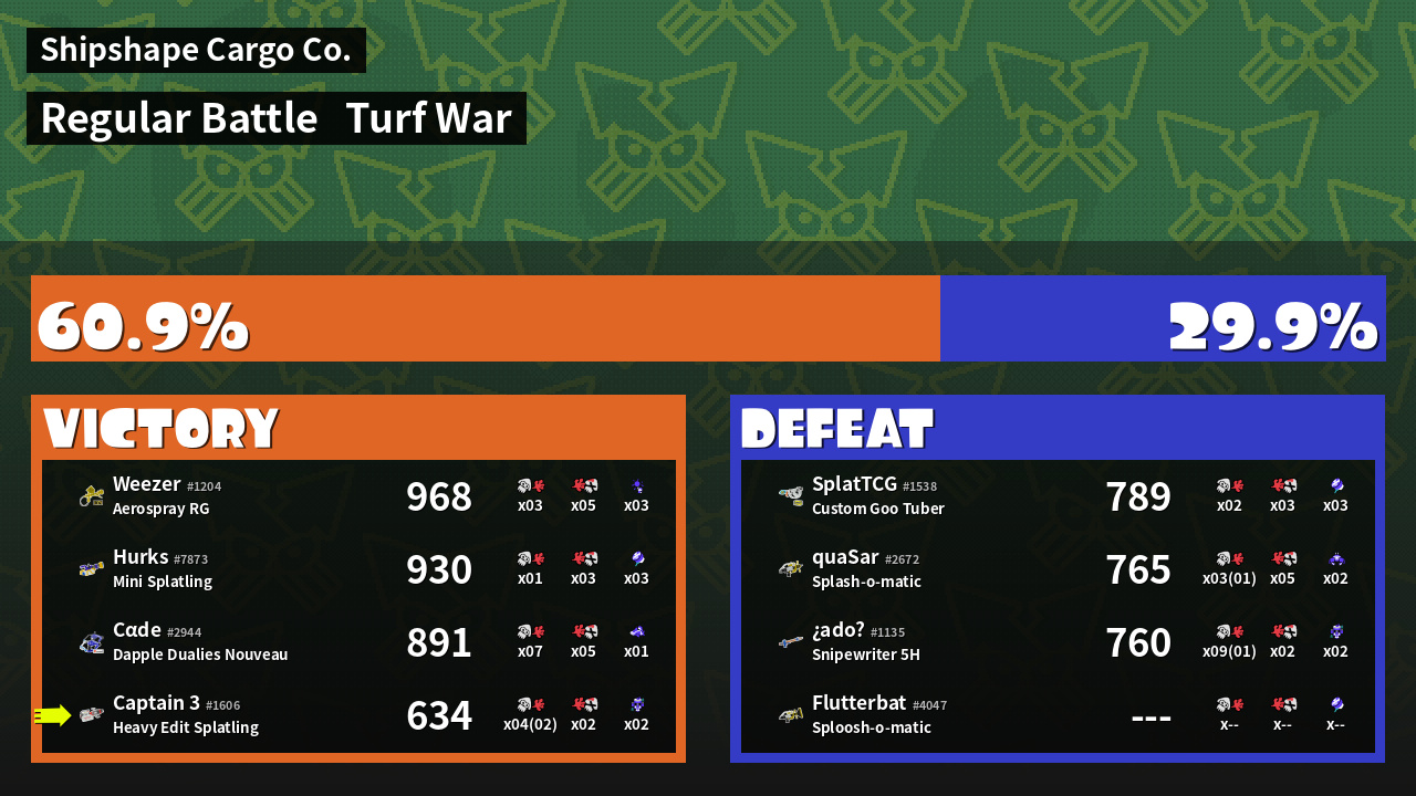 | Weapon | Heavy Edit Splatling ( Curling Bomb / Tacticooler) | ||