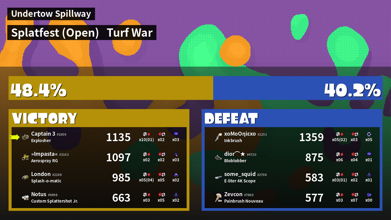 | Medals | #1 Overall Splatter #1 Turf Inker #1 Popular Target | ||