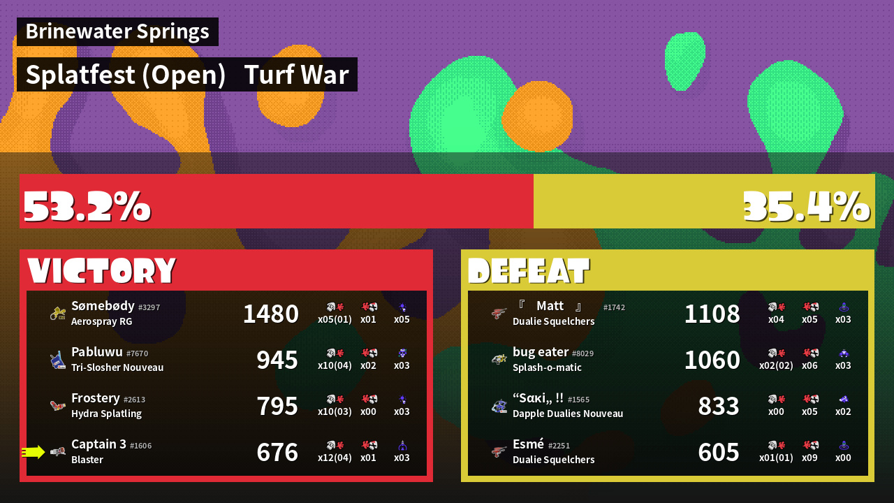 | Medals | #1 Overall Splatter #1 Super Jump Spot #1 Enemy Splatter | ||