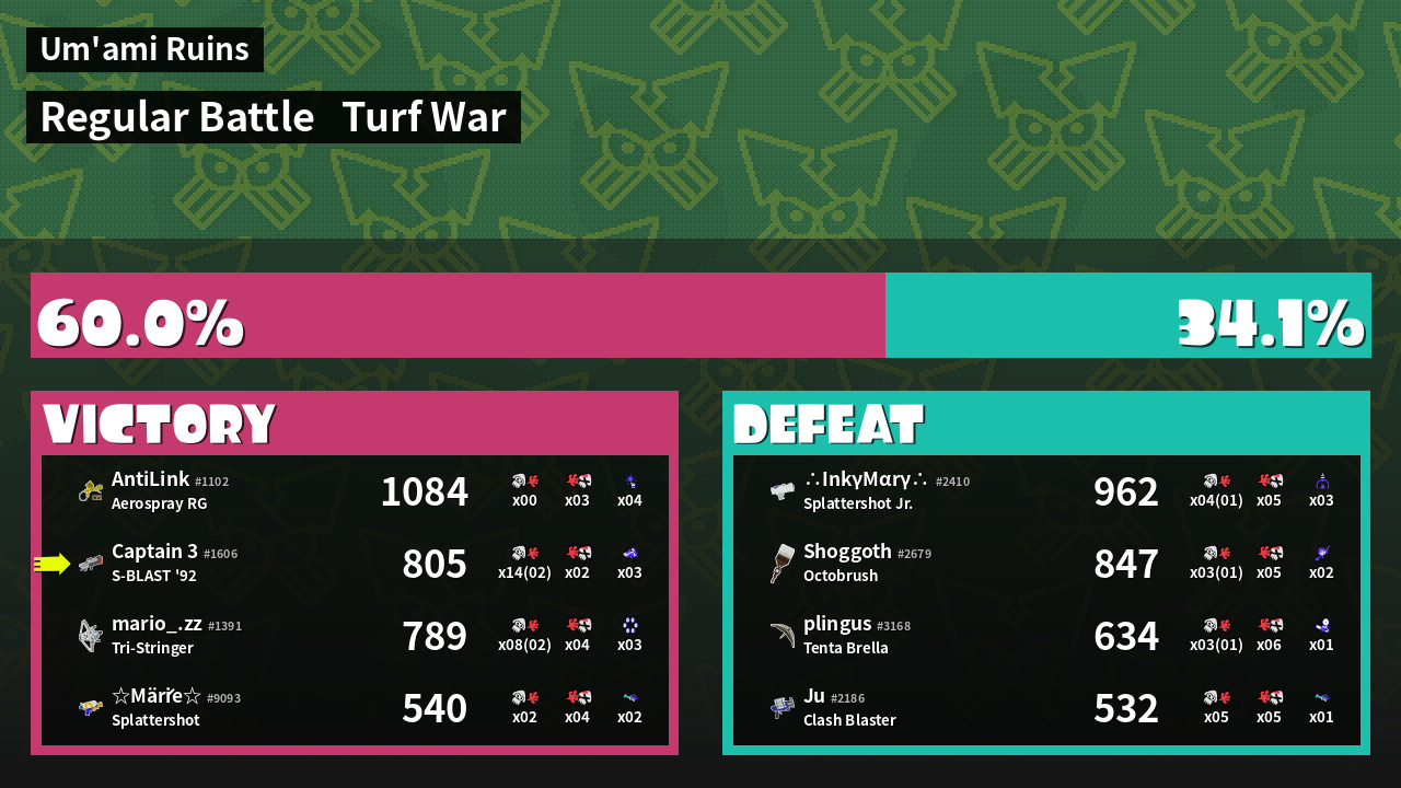 | Mode | Turf War - Regular Battle | ||