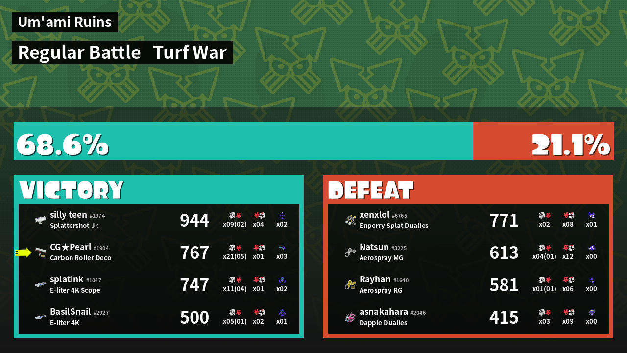 | Medals | #1 Overall Splatter #1 Popular Target #1 Enemy Splatter | ||