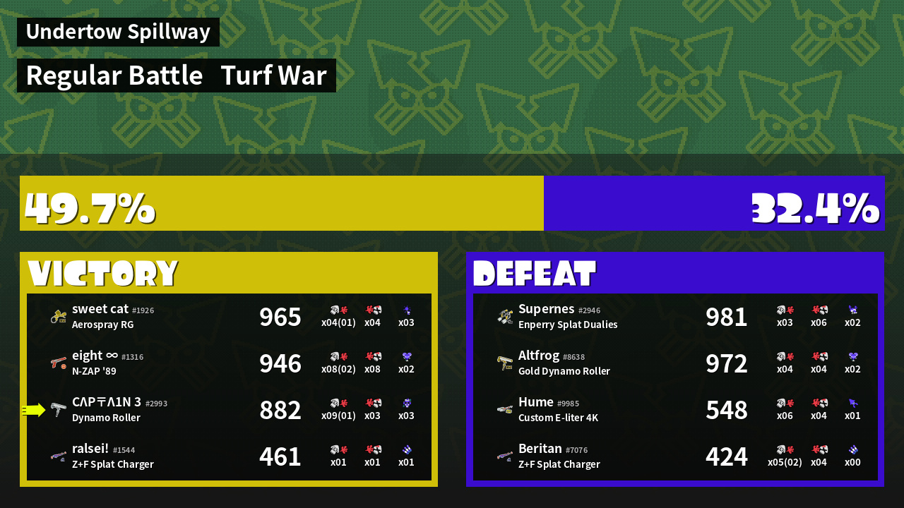 | Weapon | Dynamo Roller ( Sprinkler / Tacticooler) | ||