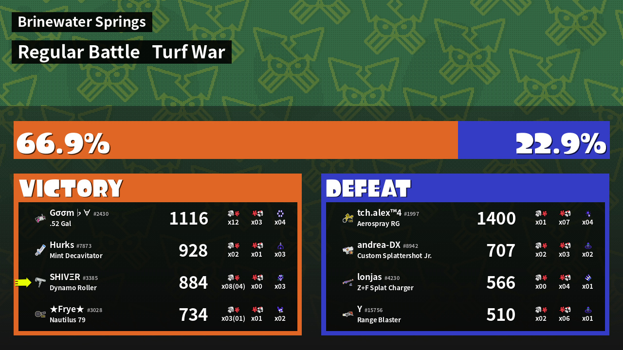 | Mode | Turf War - Regular Battle | ||
