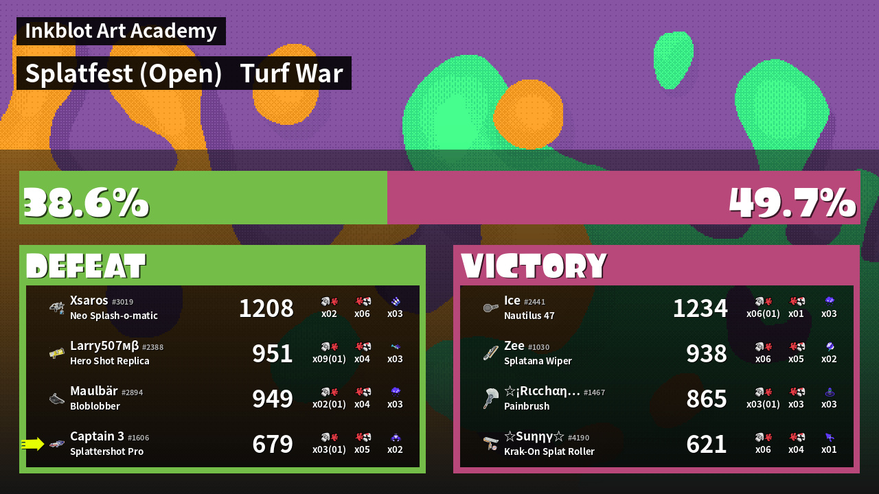 | Medals | #1 Popular Target #1 Splat Assister #1 Damage Taker | ||