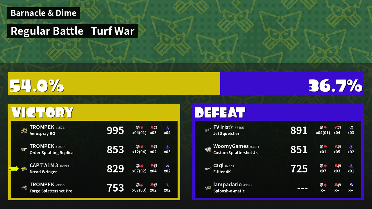 | Mode | Turf War - Regular Battle | ||