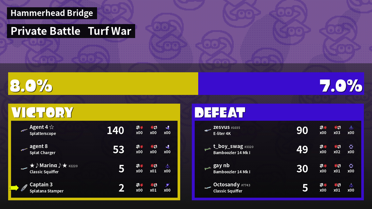 | Medals | #1 Enemy-Base Inker #2 Popular Target | ||
