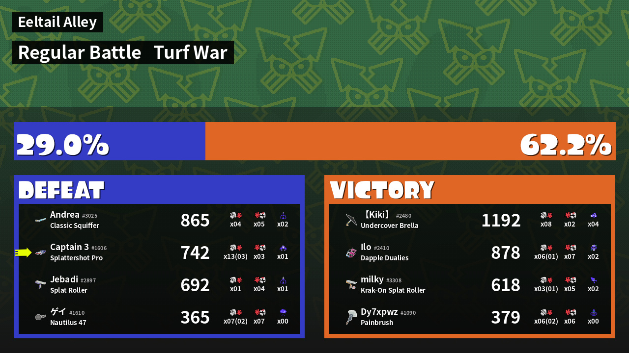 | Mode | Turf War - Regular Battle | ||
