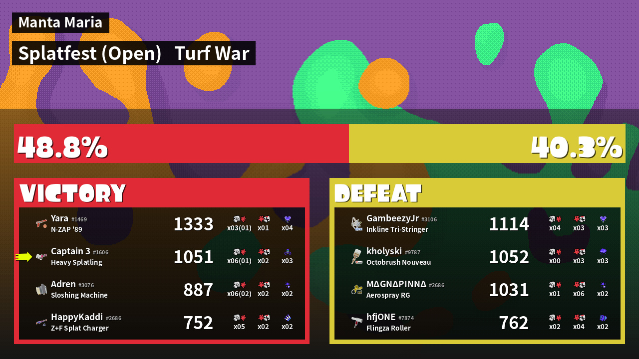 | Medals | #1 Overall Splatter #1 Enemy Splatter #1 Wave Breaker User | ||