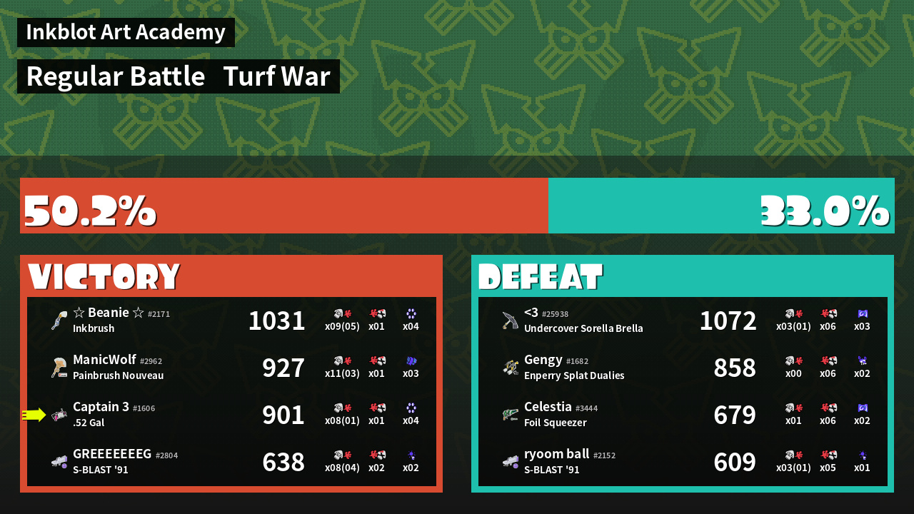 | Mode | Turf War - Regular Battle | ||