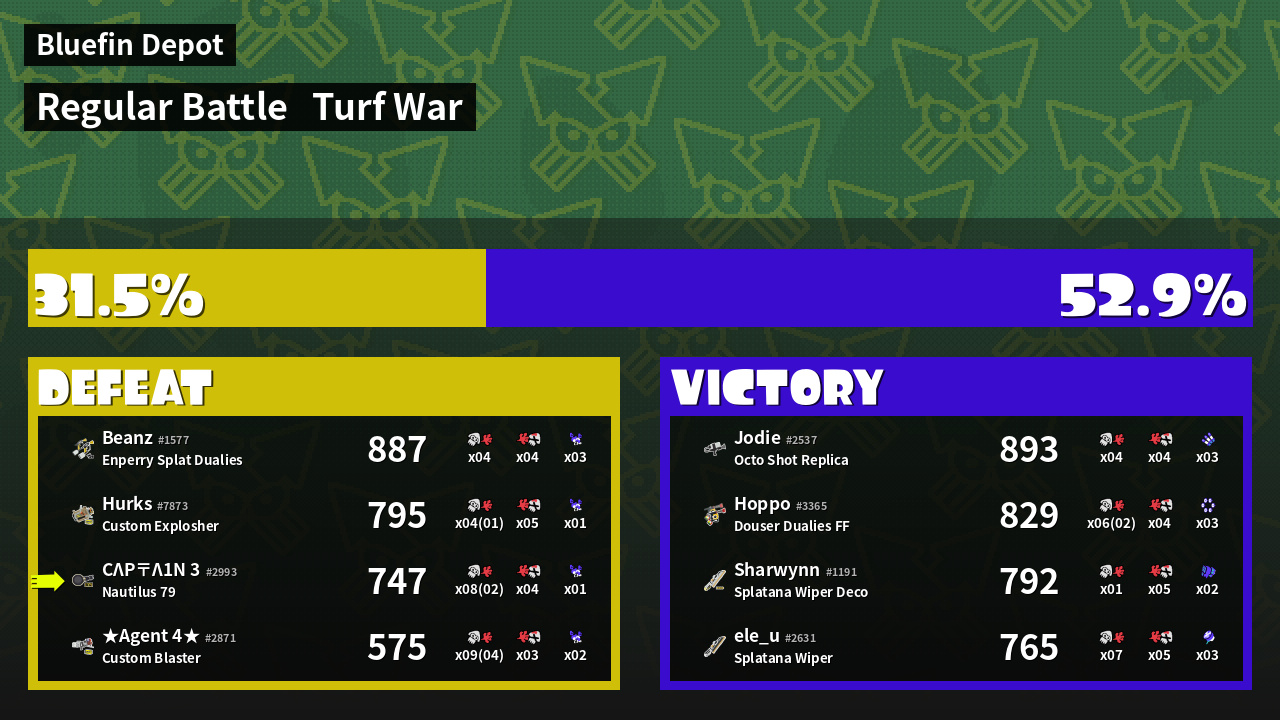 | Medals | #1 Popular Target #1 Enemy-Base Inker #1 Enemy Splatter | ||