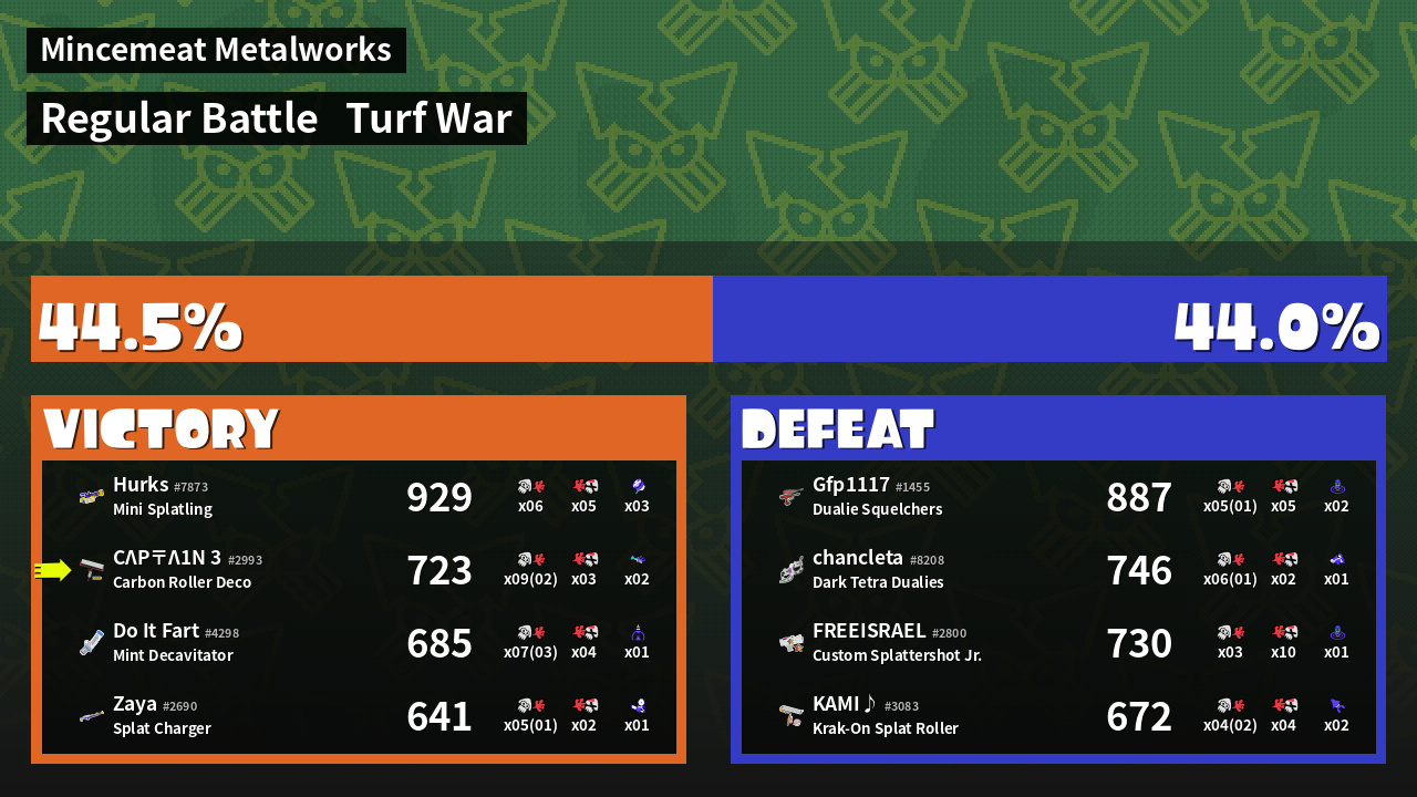 | Mode | Turf War - Regular Battle | ||