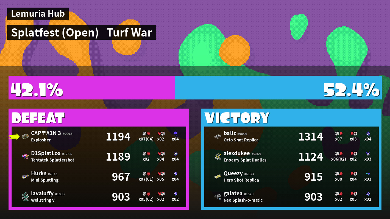 | Mode | Turf War - Splatfest (Open) | ||