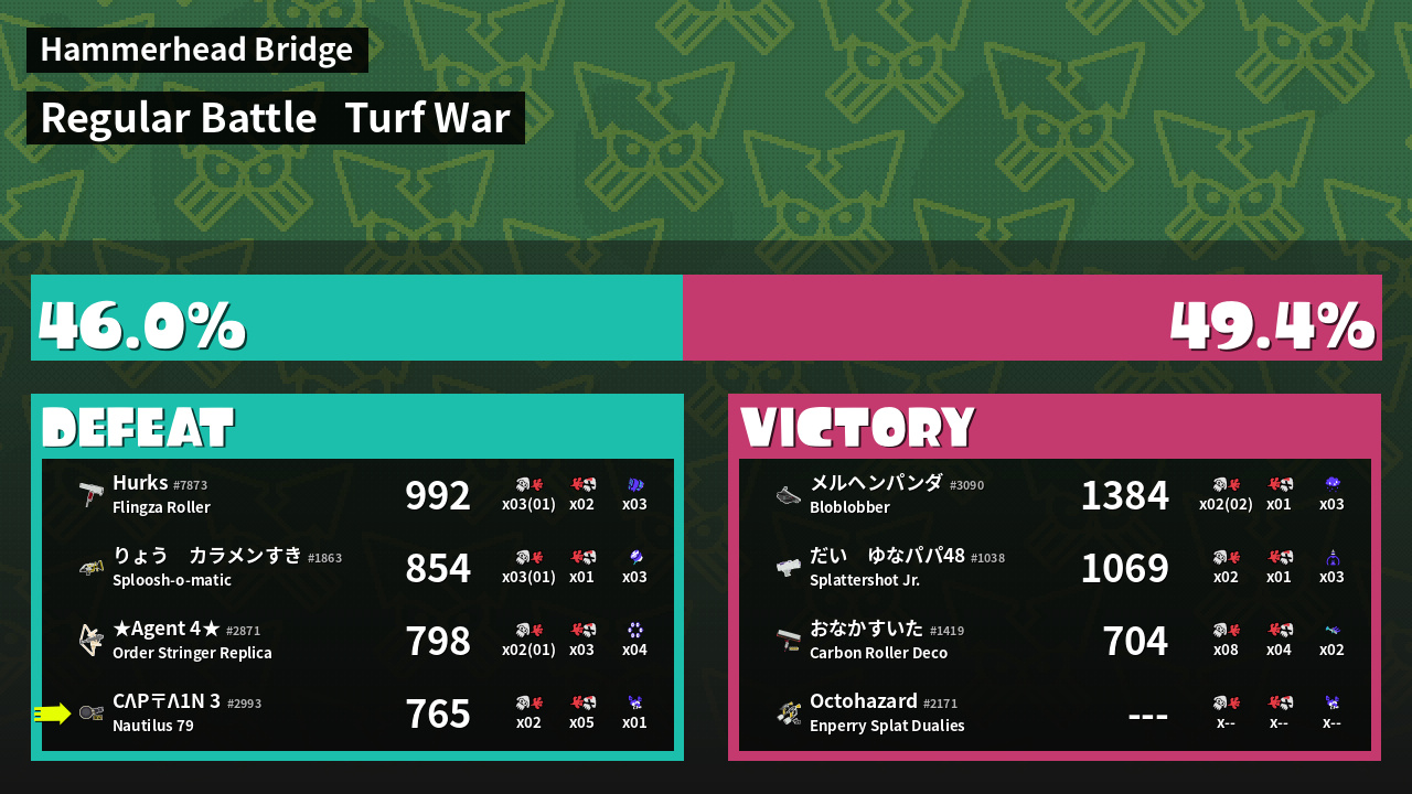 | Mode | Turf War - Regular Battle | ||
