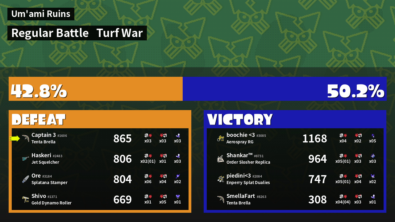 | Mode | Turf War - Regular Battle | ||