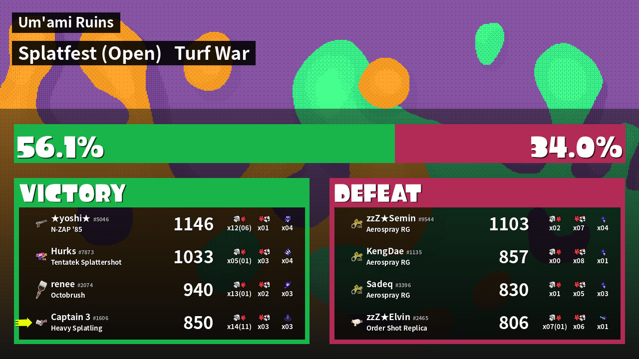 | Mode | Turf War - Splatfest (Open) | ||