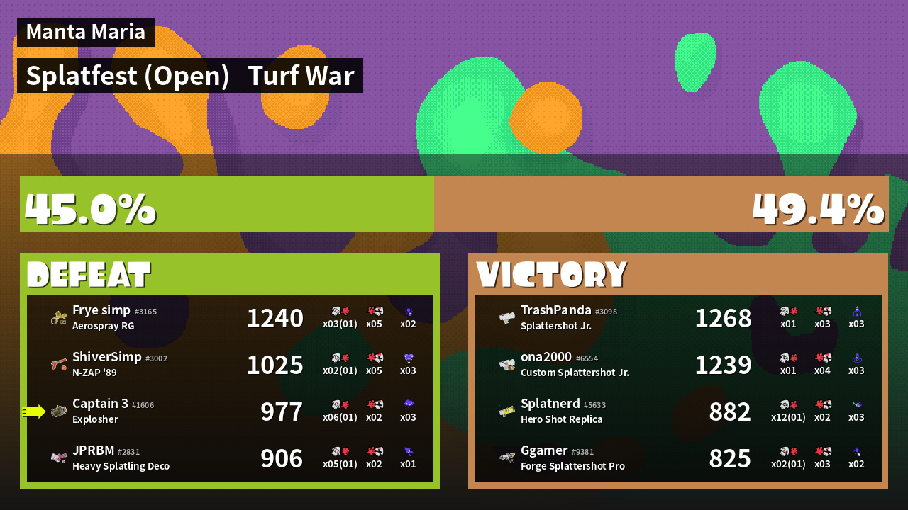 | Medals | #1 Overall Splatter #1 Popular Target #1 Super Jump Spot | ||