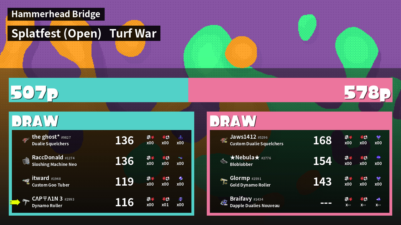 | Weapon | Dynamo Roller ( Sprinkler / Tacticooler) | ||