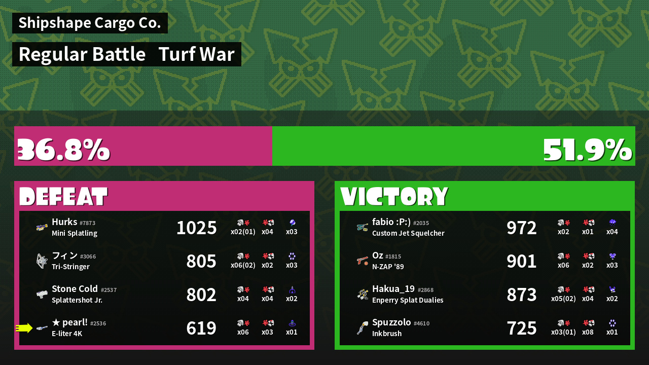 | Medals | #1 Overall Splatter #1 Popular Target #1 Enemy-Base Inker | ||