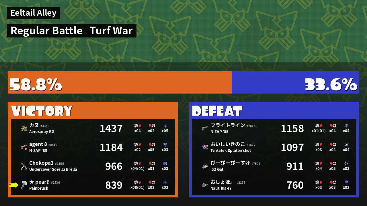 | Mode | Turf War - Regular Battle | ||
