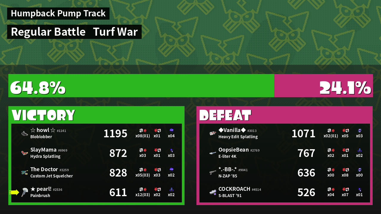 | Mode | Turf War - Regular Battle | ||