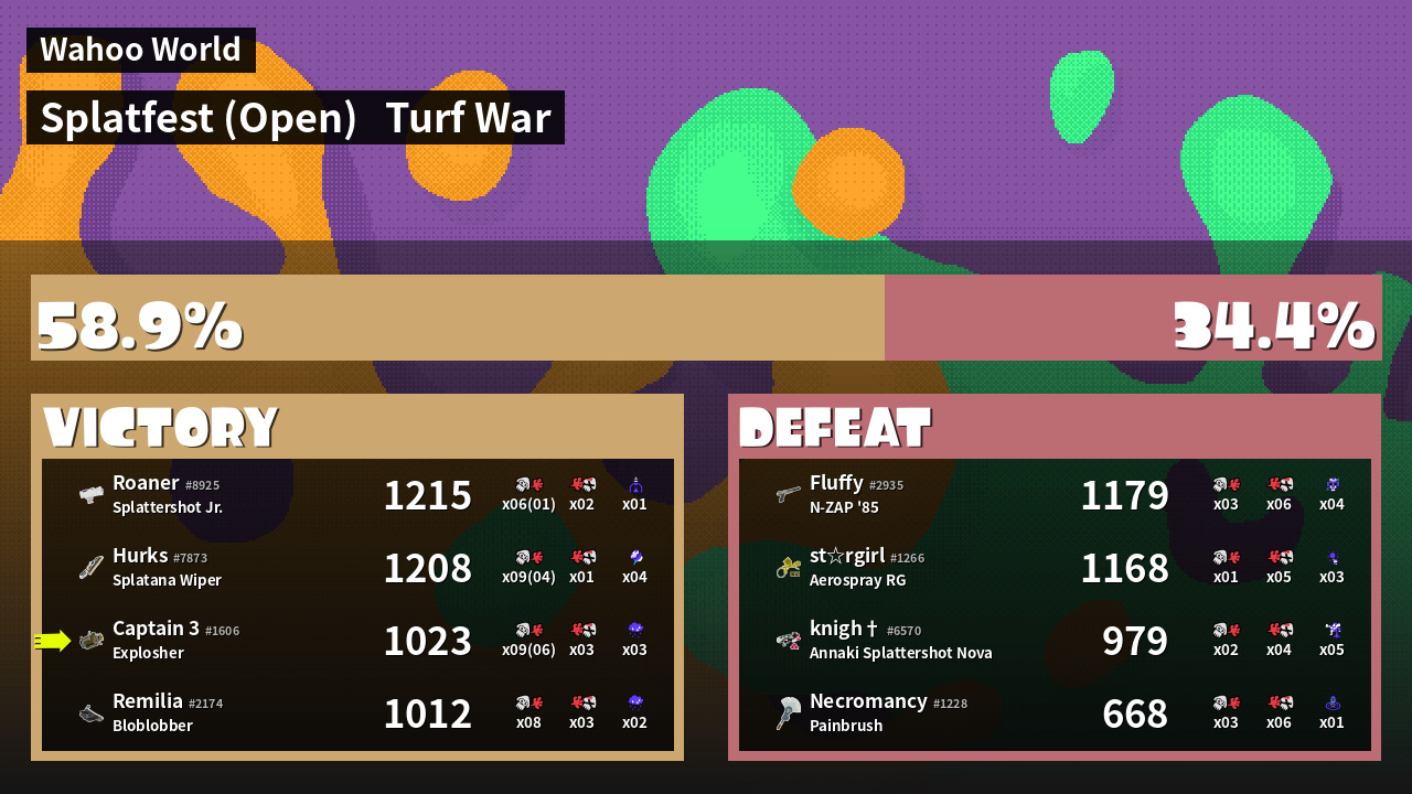 | Medals | #1 Overall Splatter #1 Splat Assister #1 Base Defender | ||